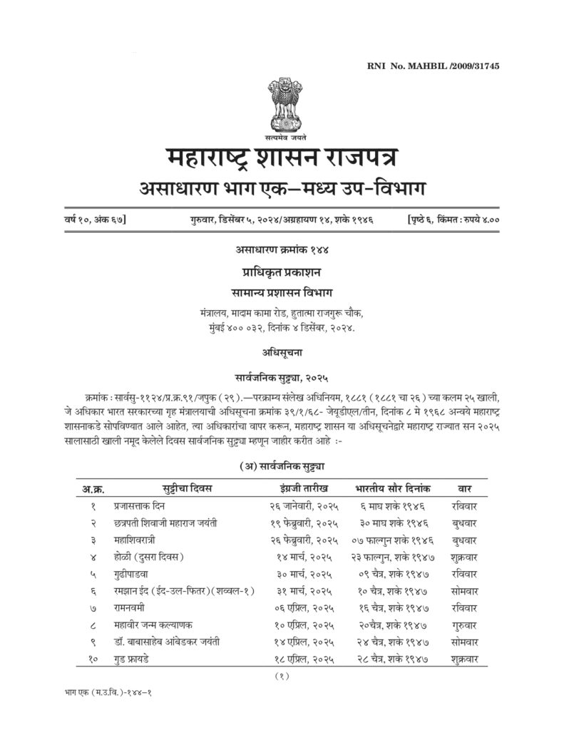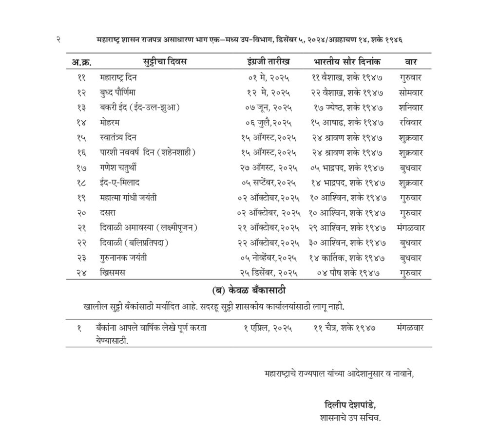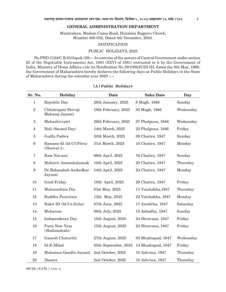 PUBLIC HOLIDAYS – 2025